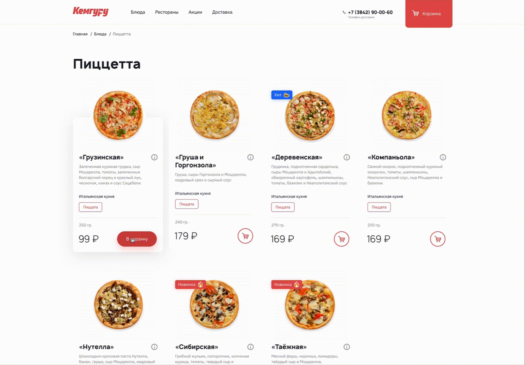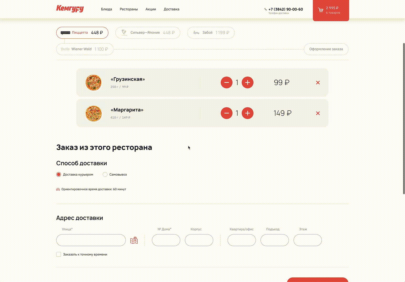 For convenience, city districts are divided into delivery zones. The user can either enter the address manually or select it on the map. The user's location is determined automatically — which is especially convenient when ordering from a mobile device.