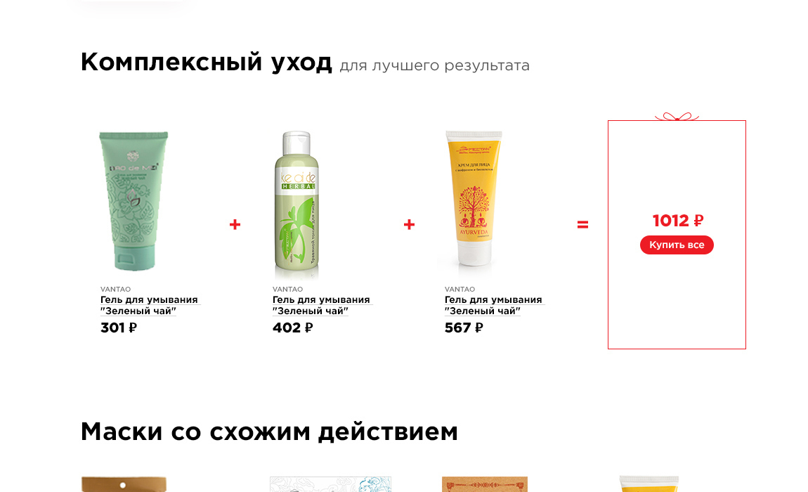 • To increase the average receipt, we added the "Comprehensive care" and "Recommendations" blocks to the product page, which offer to Supplement the purchase and get a discount.