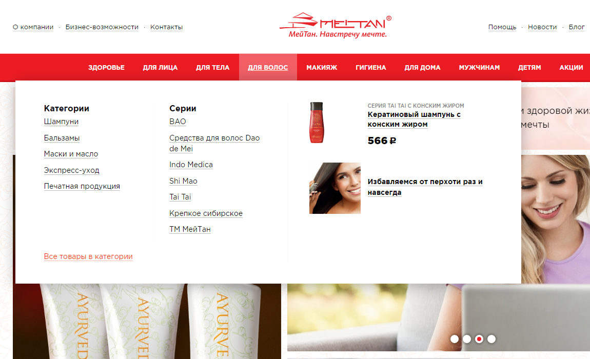 The site's audience is divided into two large groups whose behavior differs. Potential consultants are interested in business opportunities, registration conditions, and information about the benefits of working with the company. Buyers of cosmetics need a clear catalog of cosmetics, a good description of products, and convenient ordering. The path to each goal should be as simple and short as possible.