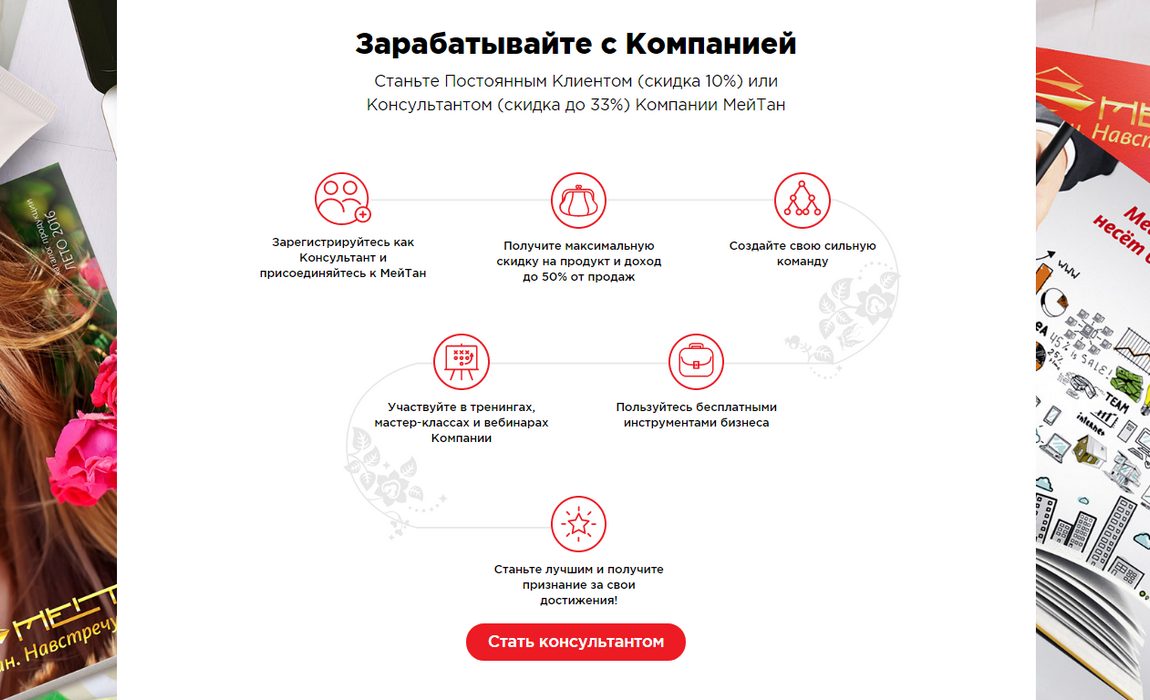 • Create separate landing pages for potential consultants and partners of the company, tell them about existing business opportunities, and encourage them to register.