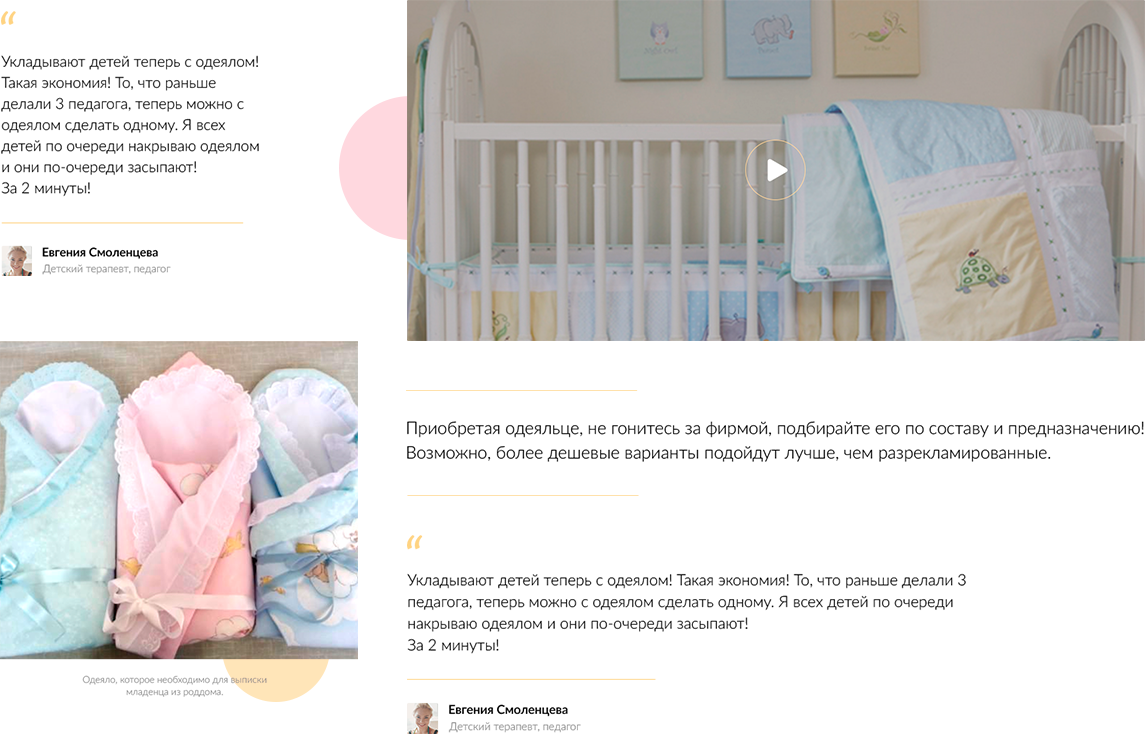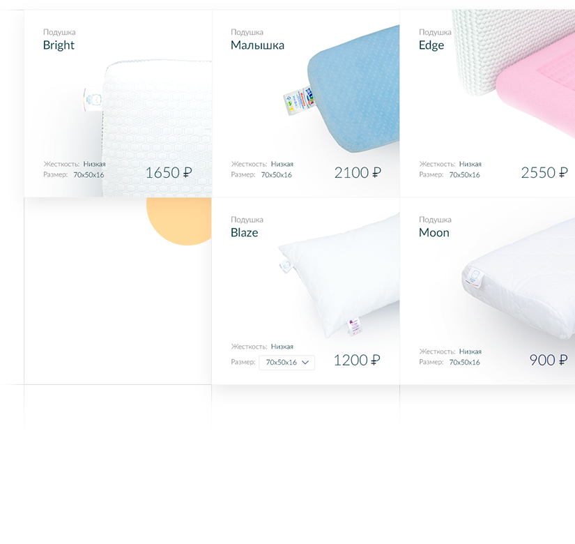 • Take on the "educational" function-a site for people that simply and interestingly tells about how classic pillows differ from orthopedic ones, what are the fillers, and so on. You can't touch the product with your hands, so we need to make the selection as easy as possible.