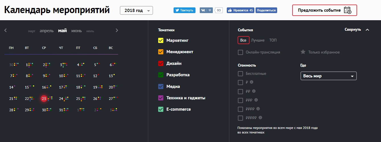 Event's Calendar Tagline is the most complete and up-to-date Russian-language event calendar for digital market specialists. It contains everything you need to know about digital events in Russia and beyond. The database of events is updated daily by the editors of the Tagline.